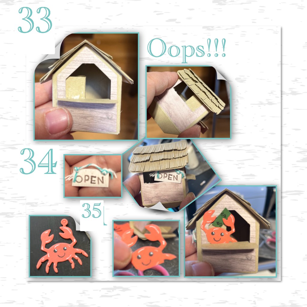 21-23- Karen’s video shows all the steps on making the Beach Bar, but here are some photos of my progress (21- because of the layers I diecut the pieces from the front and the back. )
