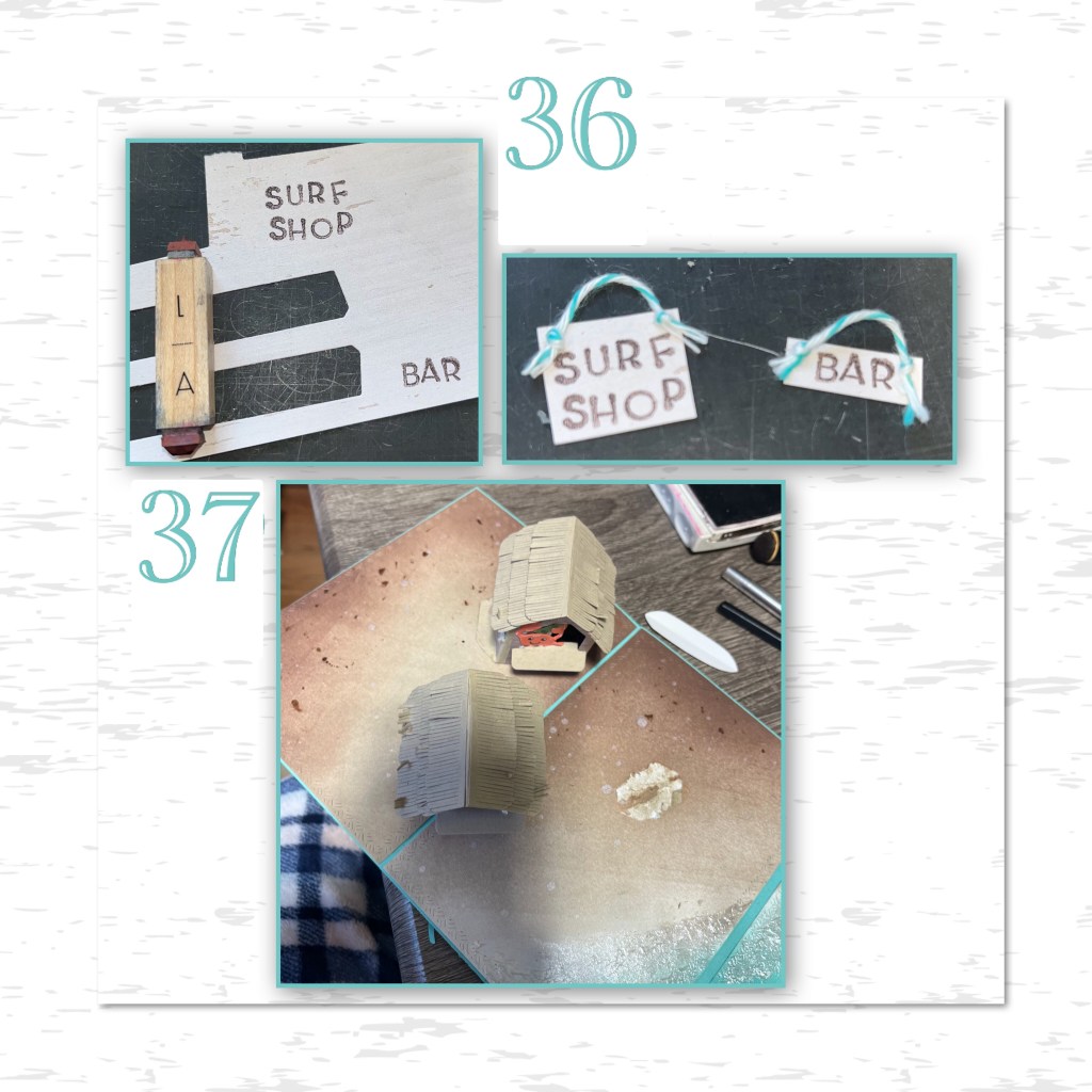 36- I thought the open sign was so cute I made a bar and surf shop sign with some itty bitty stamps I have and some bakers twine.