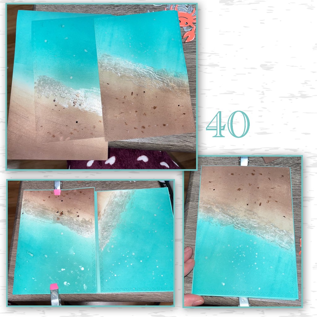 16- I used embossing paste along the shore line over the white to make it look like a crashing wave.
