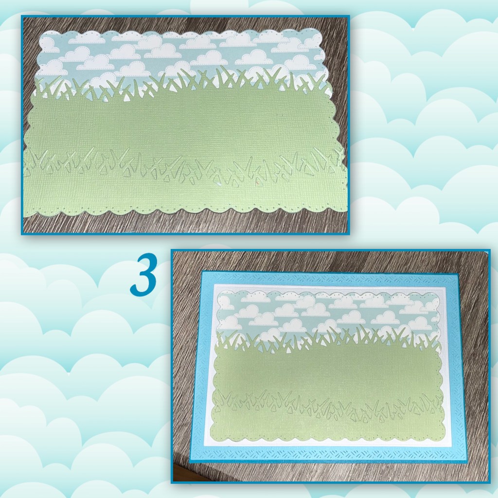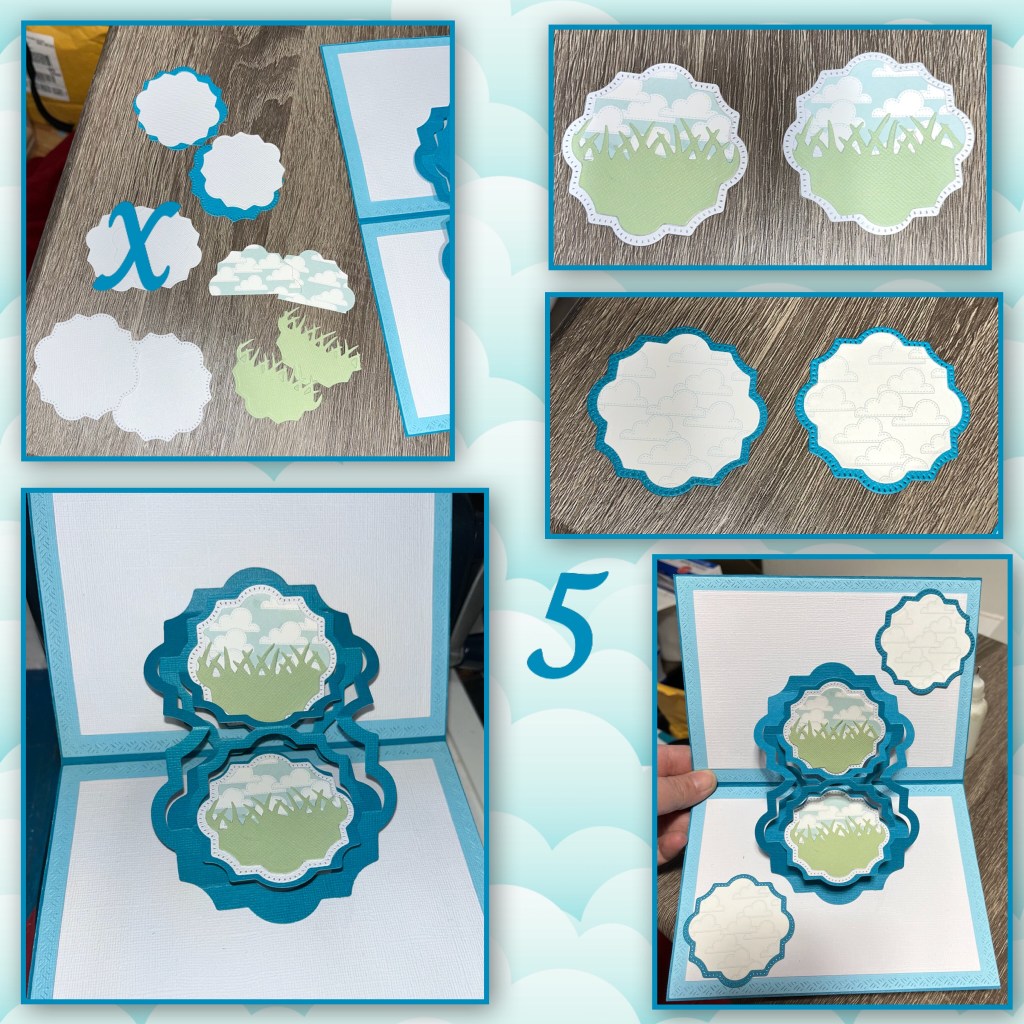 5- cut layers for the Labels from the same Paper aframes set. The ones with the X I original cut from white but change to a different but matching cloud paper. Add to card as shown