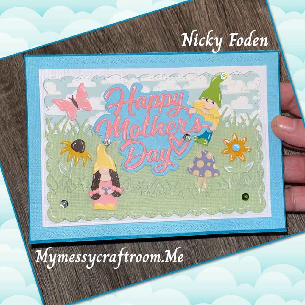 7- I die cut Happy Mother’s Day, and added the all the elements that I could fit, I also added a few sequins.