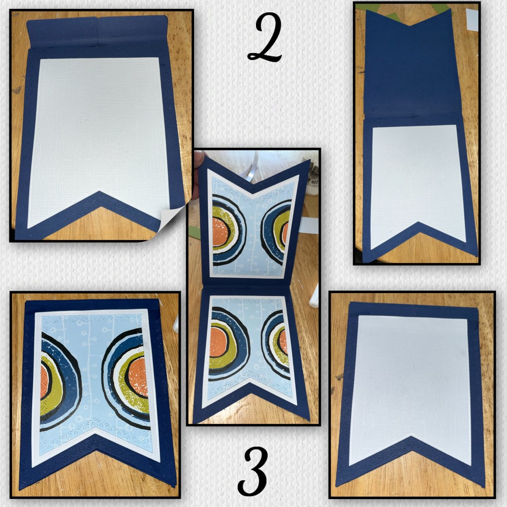 5- add the Bam boxes to the card making sure they fold to the back, I added strips of paper to each