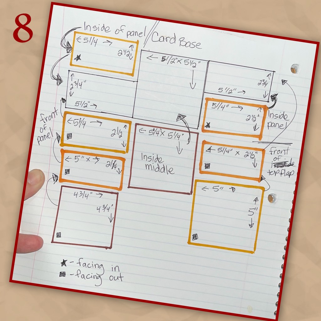 8- my bad, I was concentrating so hard on getting all the measurements right for all the layers that I forgot to take photos. Hopefully the diagram below explains how they were layered. The dimensions are correct and you could probably follow along at the other steps if this diagram doesnβt help.