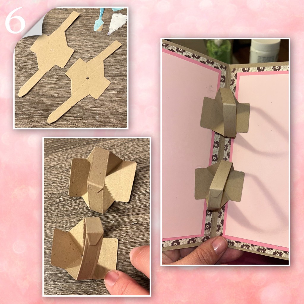 6- die cut 2 of the Twist Panel Pop up mechanisms. fold the score lines and attach the arm as shown. One of the mechanisms I folded backwards, so the mechanism will fold the opposite way. Add to card (Karen will post an assembly video that will be found on the link above)