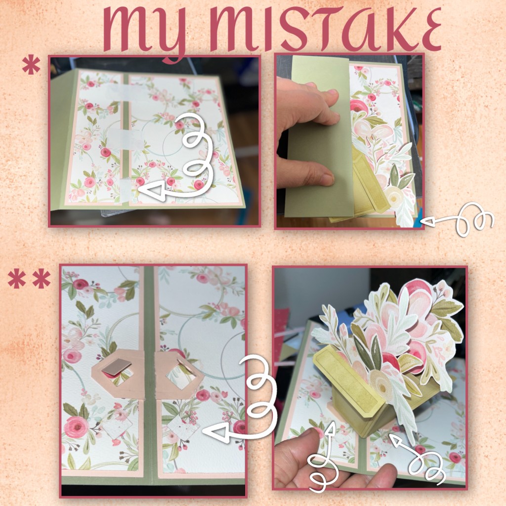 * mistake one, I cut into the pattern paper too low so the flower pot did not stay inside the limit of the card.