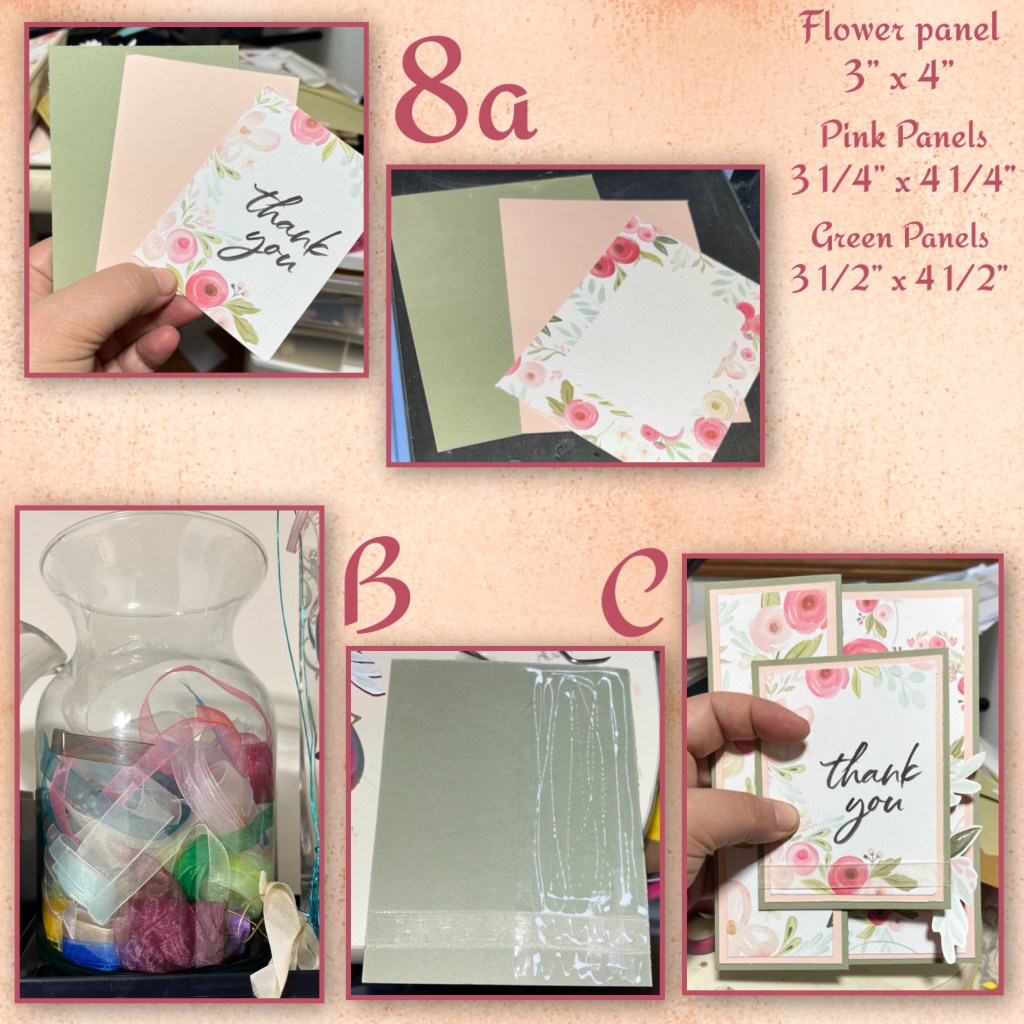 B- I cut a piece of white cardstock to 6 3/4” x 4 3/4” and added it to the back. I hand cut some more flowers and added them randomly around.