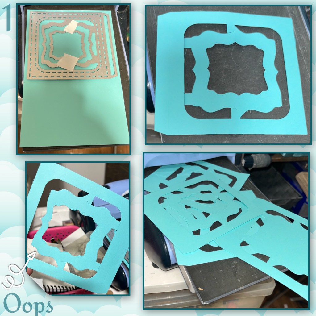 1- I knew that I wanted to make a 4 panel card. So I die cut 4 Fancy Label Accordion Panels. On 2 of them I added a smaller label die in the middle of the panel die to cut out a window.