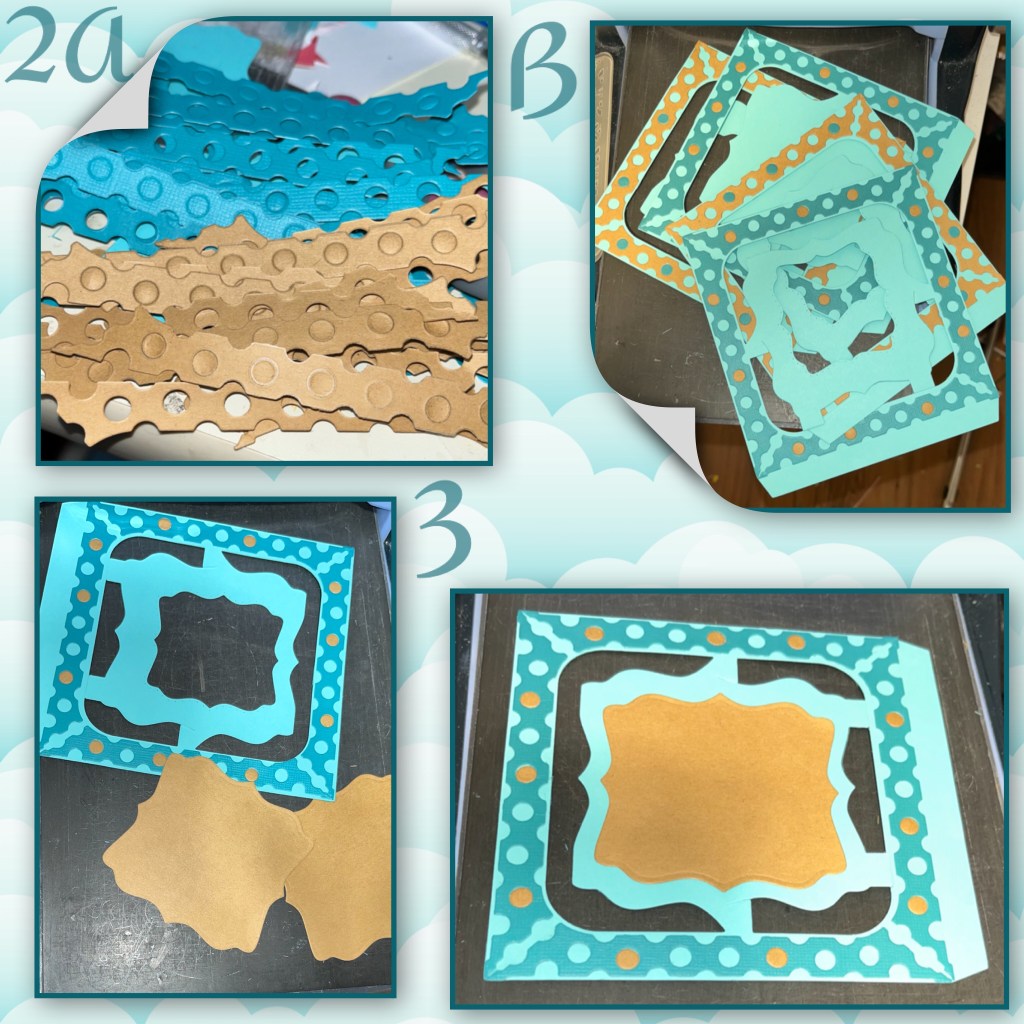 2A- I diecut multiple frames from the Fancy Winter Frames, in a darker teal and a light brown.