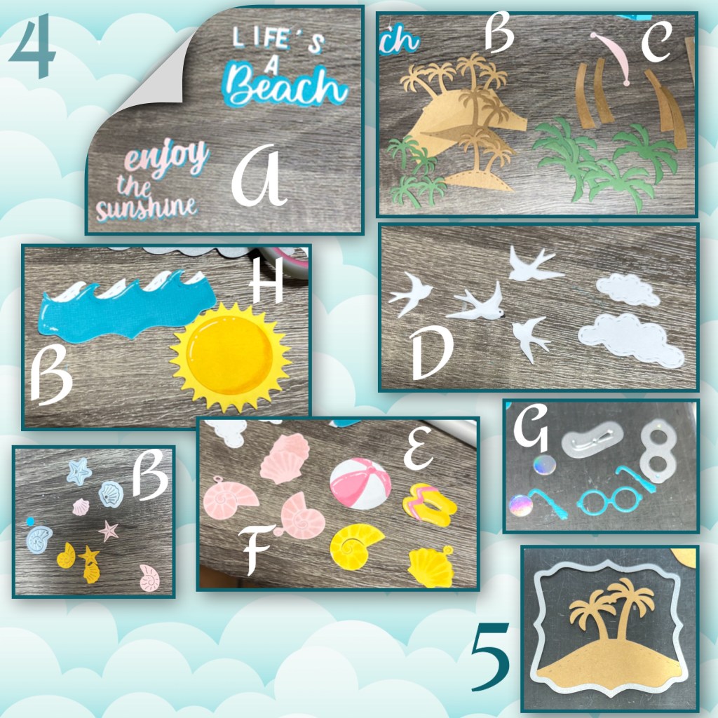 5- I cut the island pieces and the wave pieces with a label die to fit in the panels.