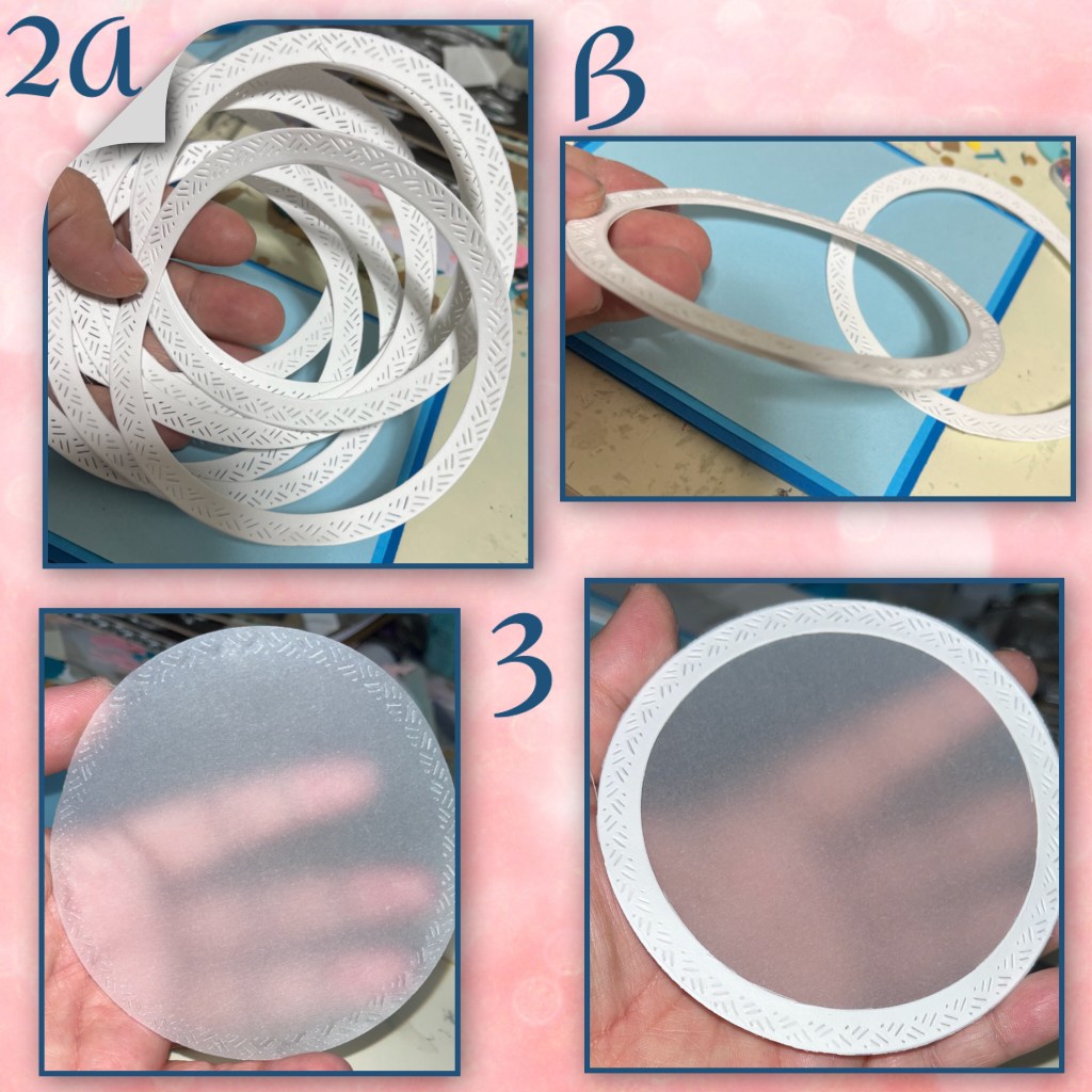 3- using the largest circle die cut out a vellum circle and adhere it to the last circle frame.