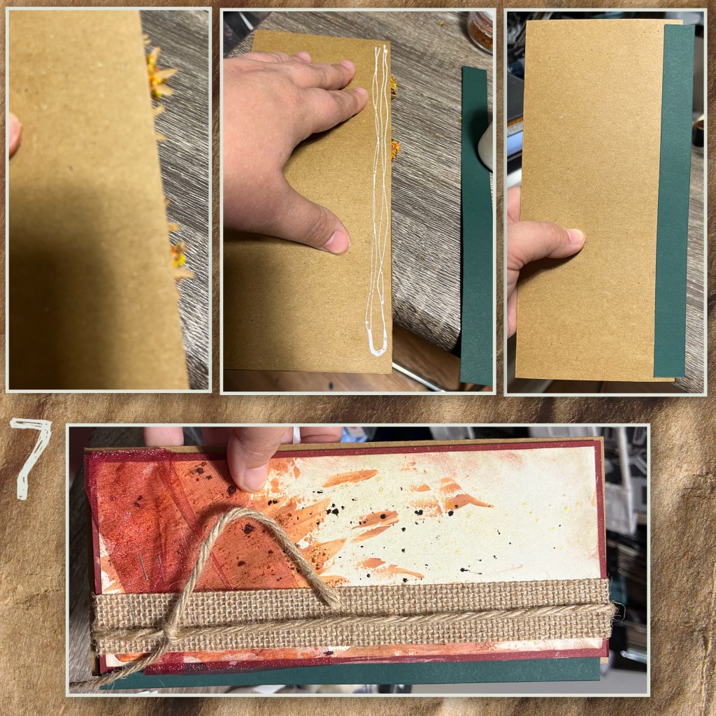 6A- I didn’t have enough of either of the green cardstocks to make 2 panels, I used both of them, the darker green is wider