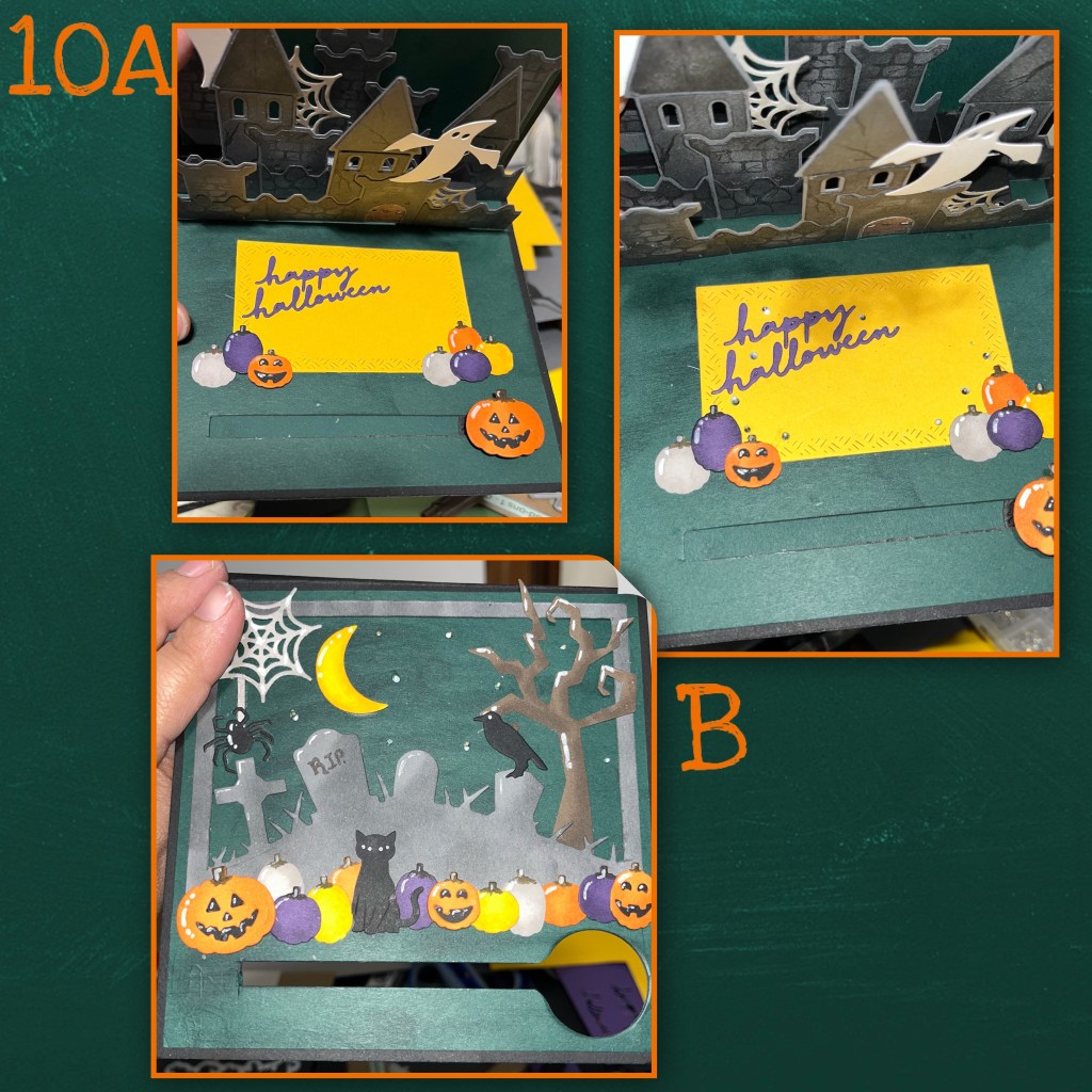 10A- I added the greeting onto the yellow rectangle on the inside with a few extra pumpkins.