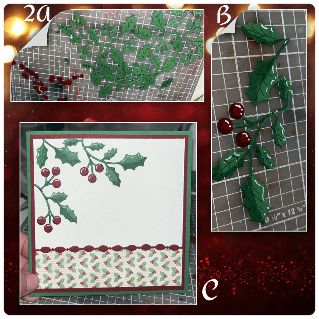 2A- I cut out the Holly and berries using the Pattern Plate Holly dies