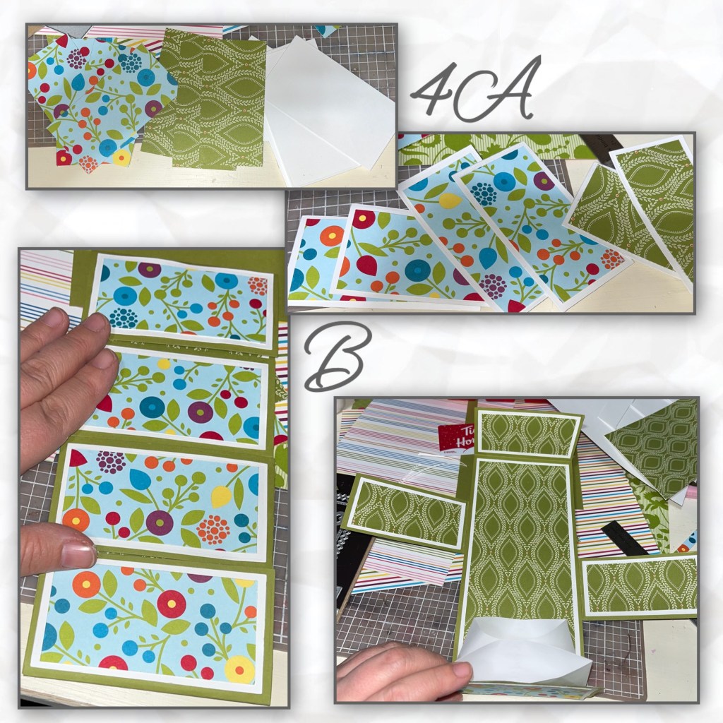 4A- die cut and adhere the panels that will go on the flaps.