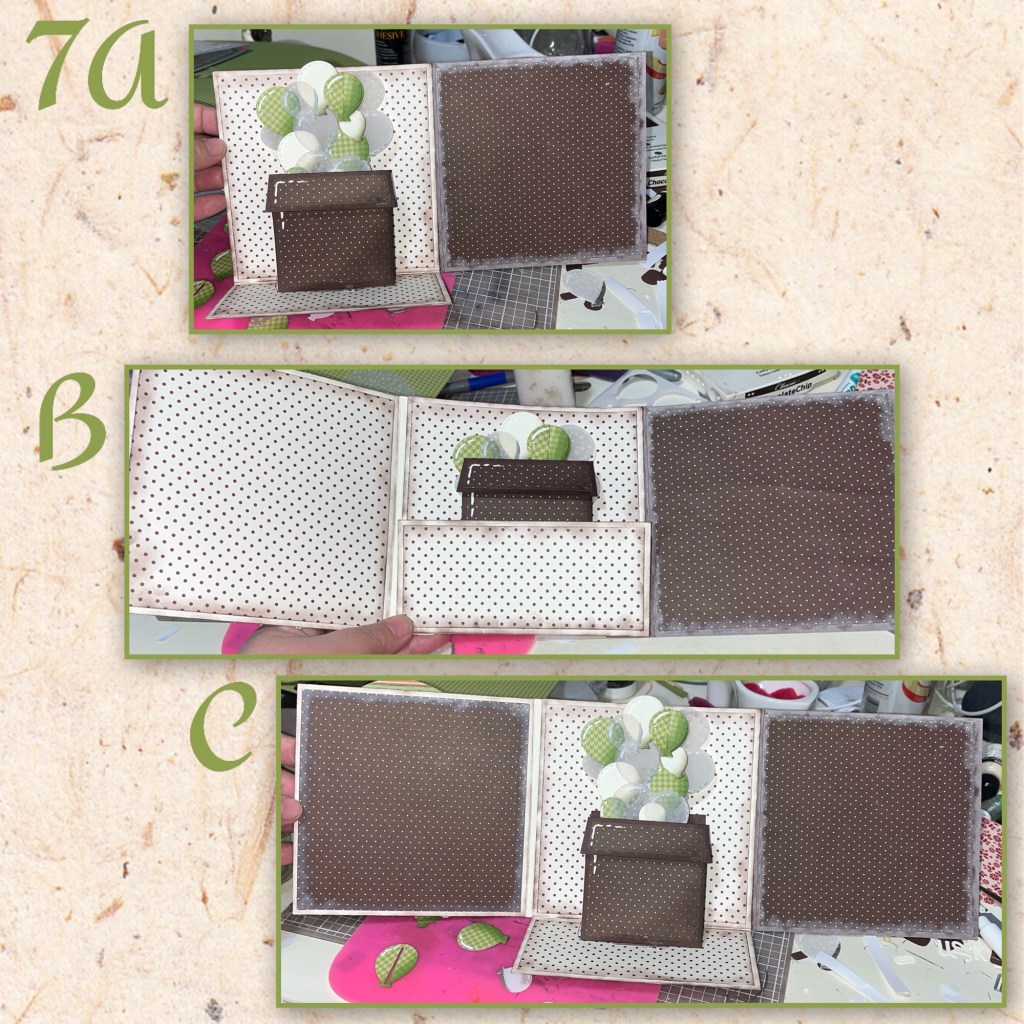 D- I added the the cream paper to the front, and the middle inside panel, and brown to the left and both sides of the right panel (shown further down)