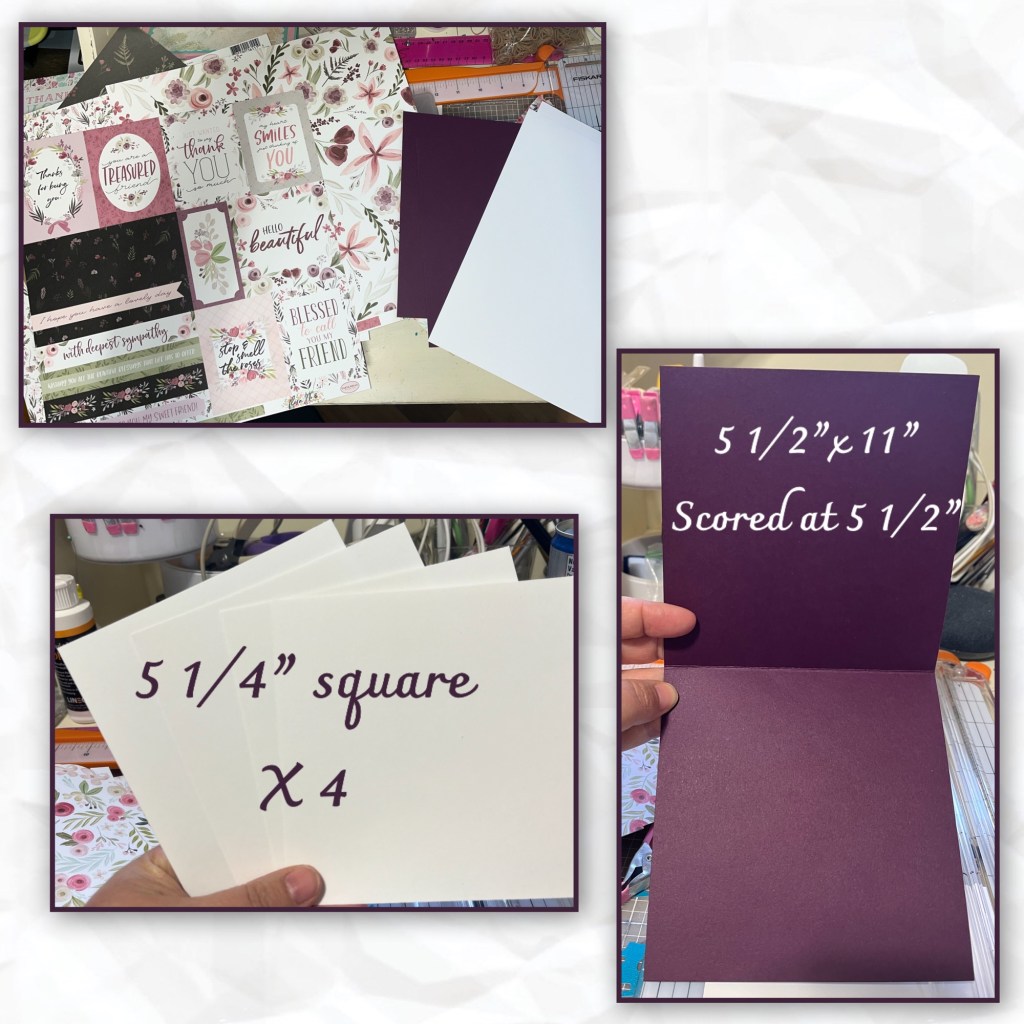 I cut the panels for the front as shown. Then layered. The pinkish frame is more of a purple (the flash changed the colour in the photo)
