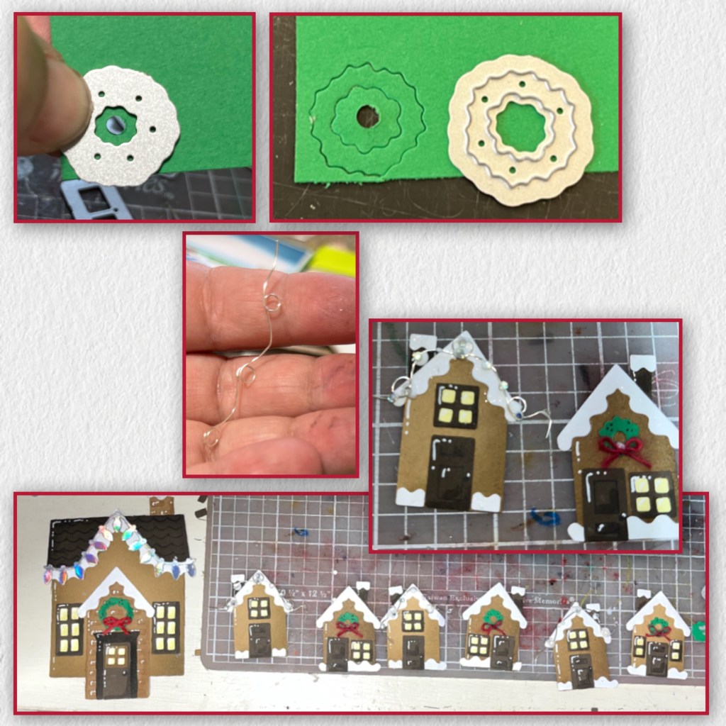 To make Christmas lights for the other little houses I used a very thin silver wire and, twisted it in little loops and added some clear itty bitty gems.