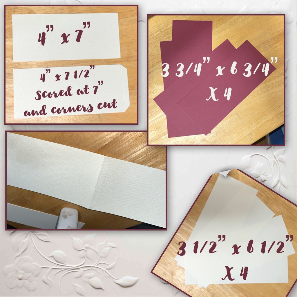 I cut the card base and layers as shown below. The cream coloured layers are actually a thinner textured paper. Connect the two cardbase pieces together.