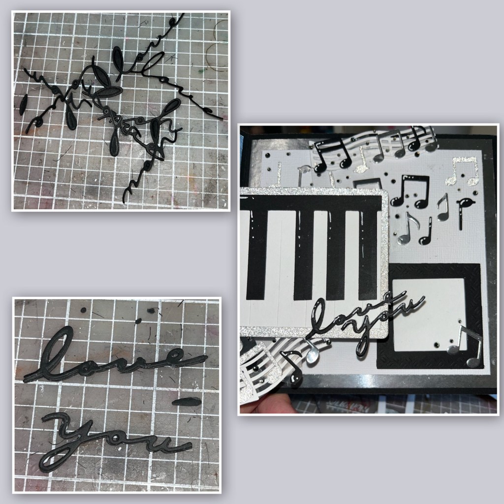 The βlove youβ is from the Popβn Swap set, I die cut it 3 times and layered together, then added to the bottom right of the piano keys piece.