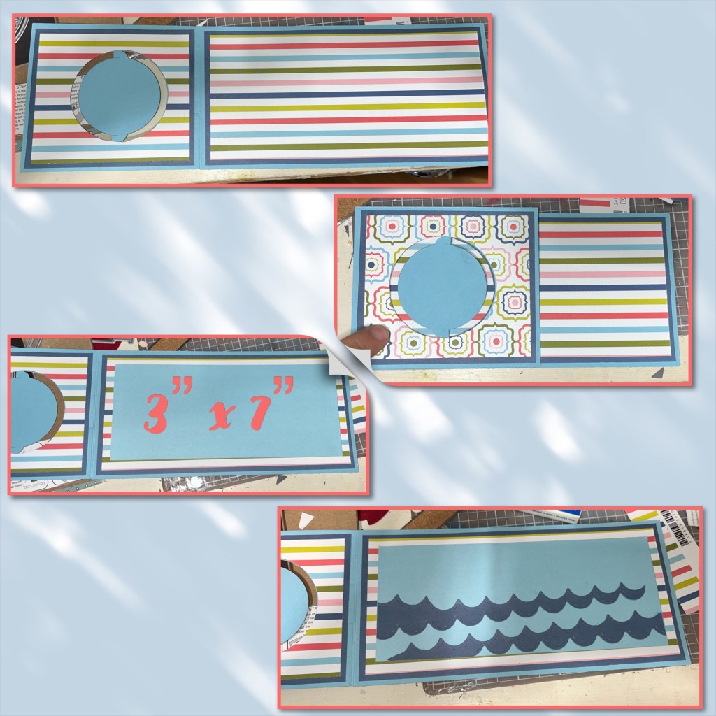 Cut a baby blue panel and add to the long side. Diecut the waves using the Tropical Scenes dieset
