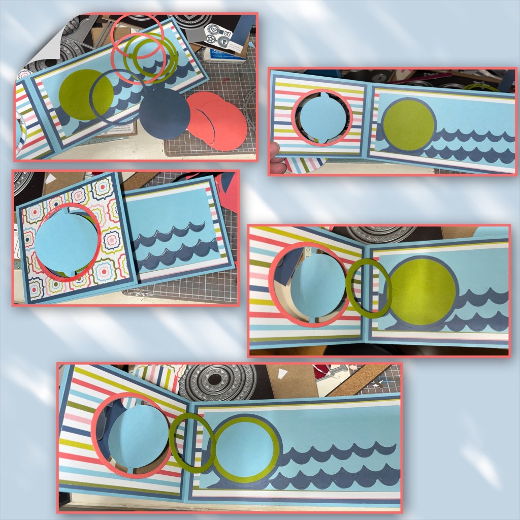 I cut the Circle Charm Pop mechanism into the short flap (Karen has a video tutorial on the product page at the link ⬆️ ) on the 2 small panels, trace the circle from the circle on the card front and cut them out with scissors.