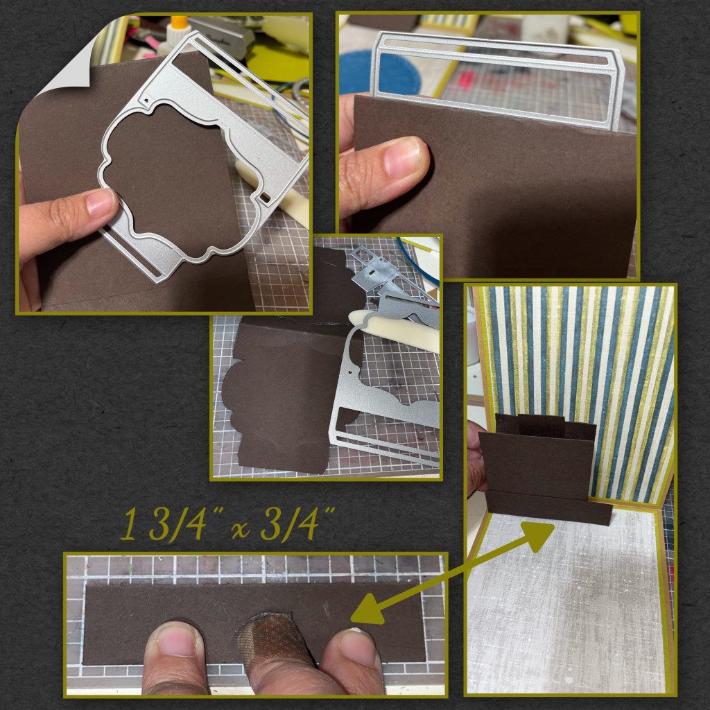 To make the bed I used the Lorna Label dieset. I folded a piece of cardstock in half and lined the die up with the folded edge as shown to double it up. I was planning on attaching the Lorna Label to the Parcel Pop up but the Parcel Pop up wasn’t wide enough along the bottom. So I had to add the strip as shown.