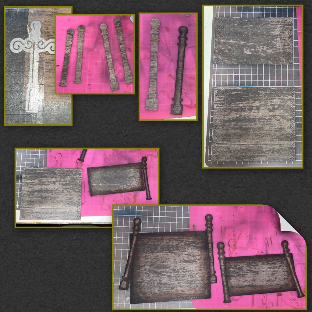 I used the Street Post Pop up to make the bed poles. I made the head board poles taller that the foot board. I used alcohol markers to add some definition. I started using the Squares Crosshatch to make the headboard and foot board but ended up trimming. I used alcohol markers to the headboard and footboard as well.