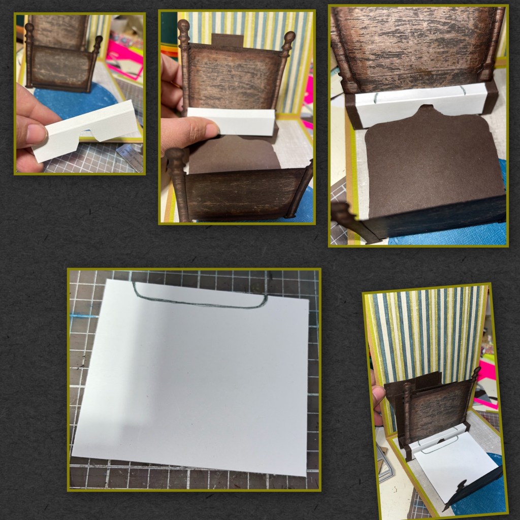 When assembling the headboard I found it too big so I trimmed a little off the bottom and the right side. I cut a thin piece of cardstock and attached it to the bottom of the Lorna Label so the foot board will have something to attach to. I also trimmed the sides of the bottom Lorna Label so they will be straight.