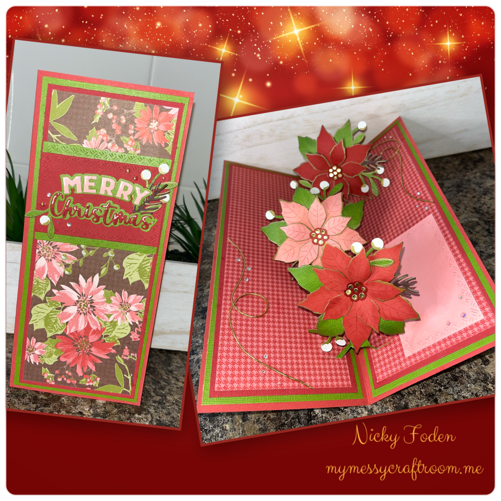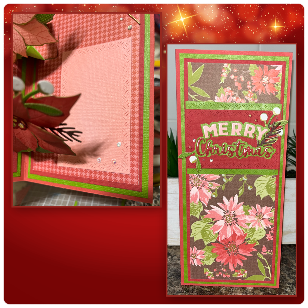 Hello crafty crew, today I am sharing the card I made for the November Karen Burniston design team challenge. This months challenge was to make an Auntimn or Christmas Cheer card. And since I am always in need of a Christmas card I decided on Christmas cheer. I really love the new Poinsettia dieset and wanted to use it again.