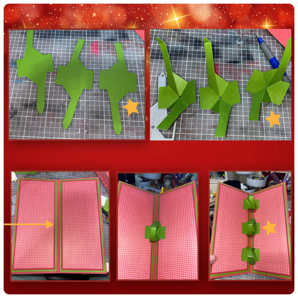 I cut the Twist Flower Pop Up mechanisms for the inside three times. Because it was textured card stock and I wanted the texture to be the same on all three, so for the middle one that I plan to reverse I cut it with the die under the card stock facing up so the diecut piece will be the opposite direction. The pieces with the βοΈ in the photos are the pieces that are reversed. Hope this makes sense. (Karen has a video tutorial to install this mechanism on the product page at the link β¬οΈ )