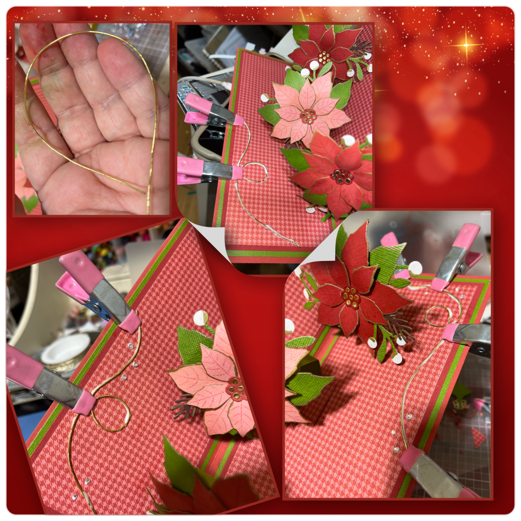 I cut some other pieces from the Poinsettia die set to add as a little more filler.οΏΌ I inked them up as well and added some gold highlights.οΏΌ