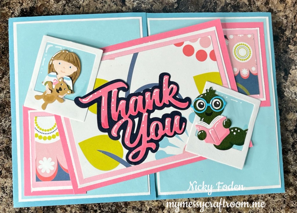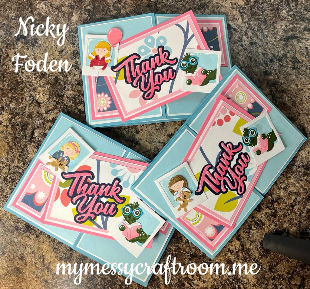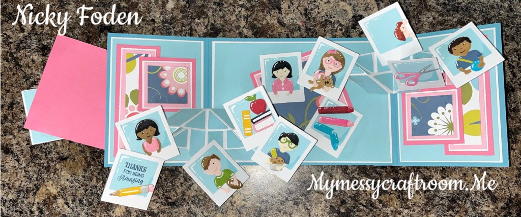 I decided to have a good play with the paper people and thought they would look good inside the photo frame. I also wanted to try to see if I could get 2 Triple Platform bases in a gatefold card. I personally have no need for a teacher card so decided I would send it to my granddaughters and realized I would need 3 cards. So l had a bit of fun making them.