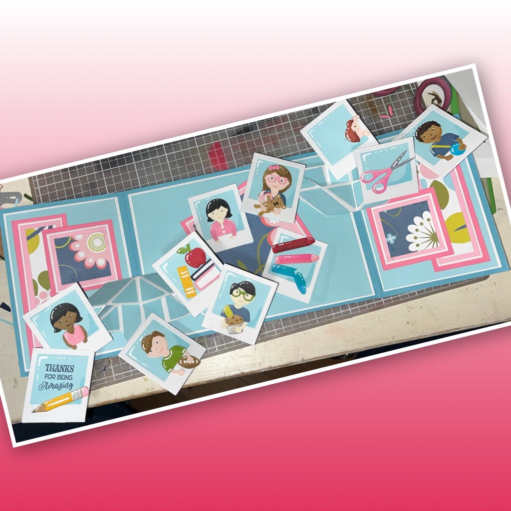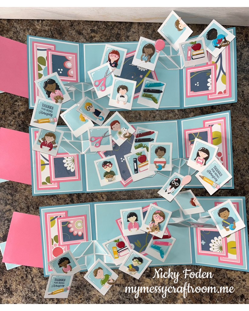 Wow, wow, wow! As always your creative ideas are over the top; using two of the triple platform pop up made for such a super fun card! Loving all the intricate details you added to the paper people to make your card so special and one of a kind. Your granddaughter will be so excited to give these to her lucky teachers!