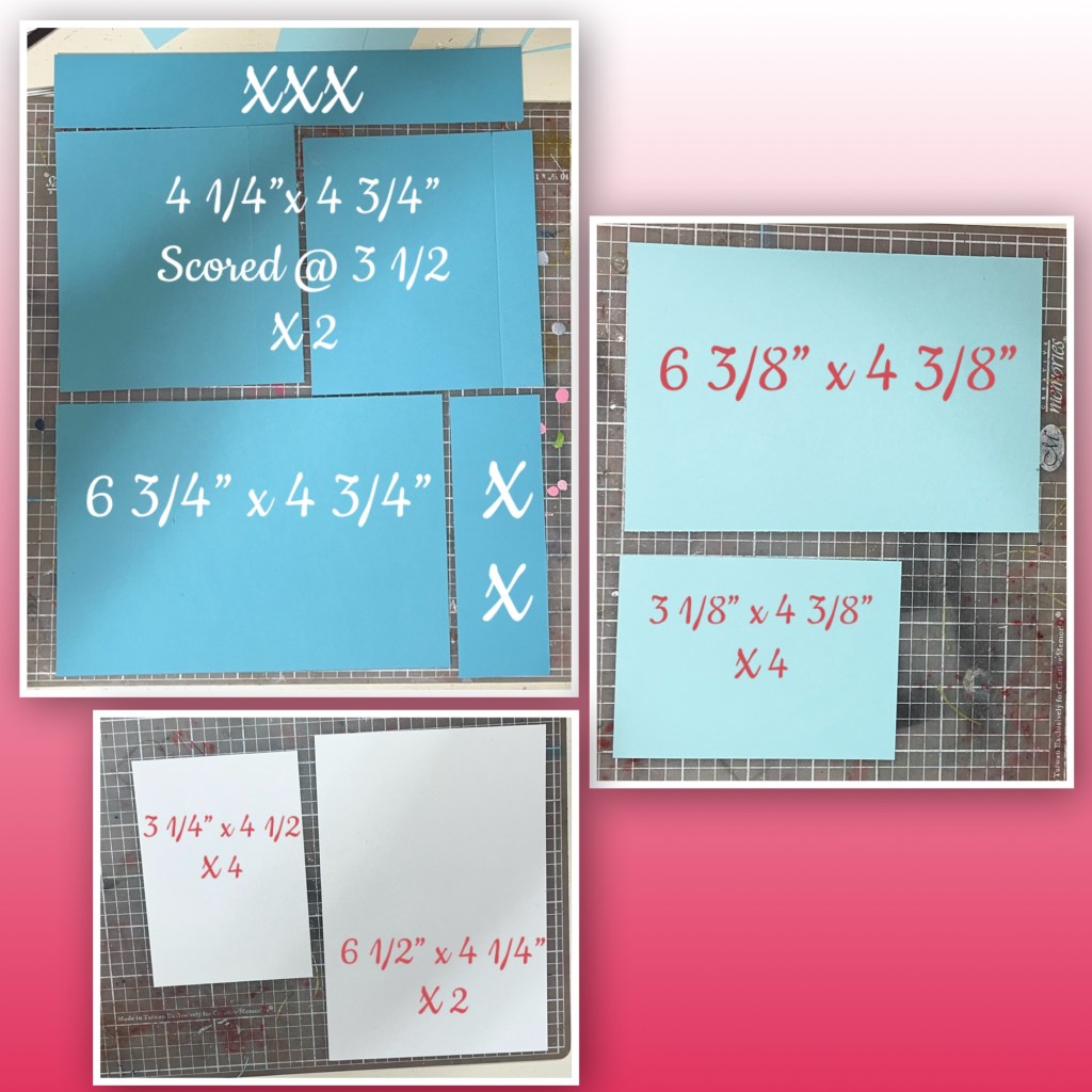 Now for the card base, with the directions below I was able to use one sheet of 8 1/2 x 11 card stock per card cut as shown for the card base. And then cut the panels to layer, dimensions below.