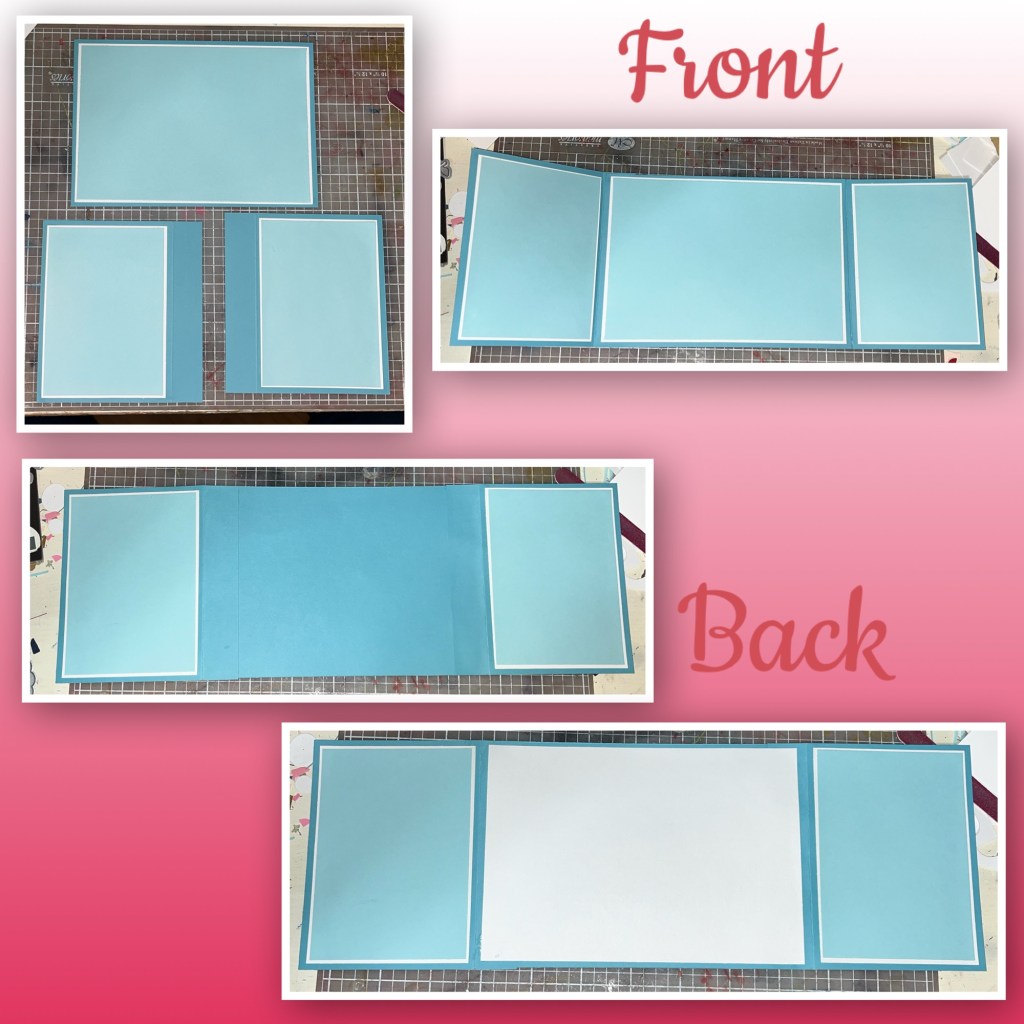 Put the panels on the front and back of the flaps, and the inside of the card. I then glued the flaps to the back of the card. Then covered the back with the white panel.
