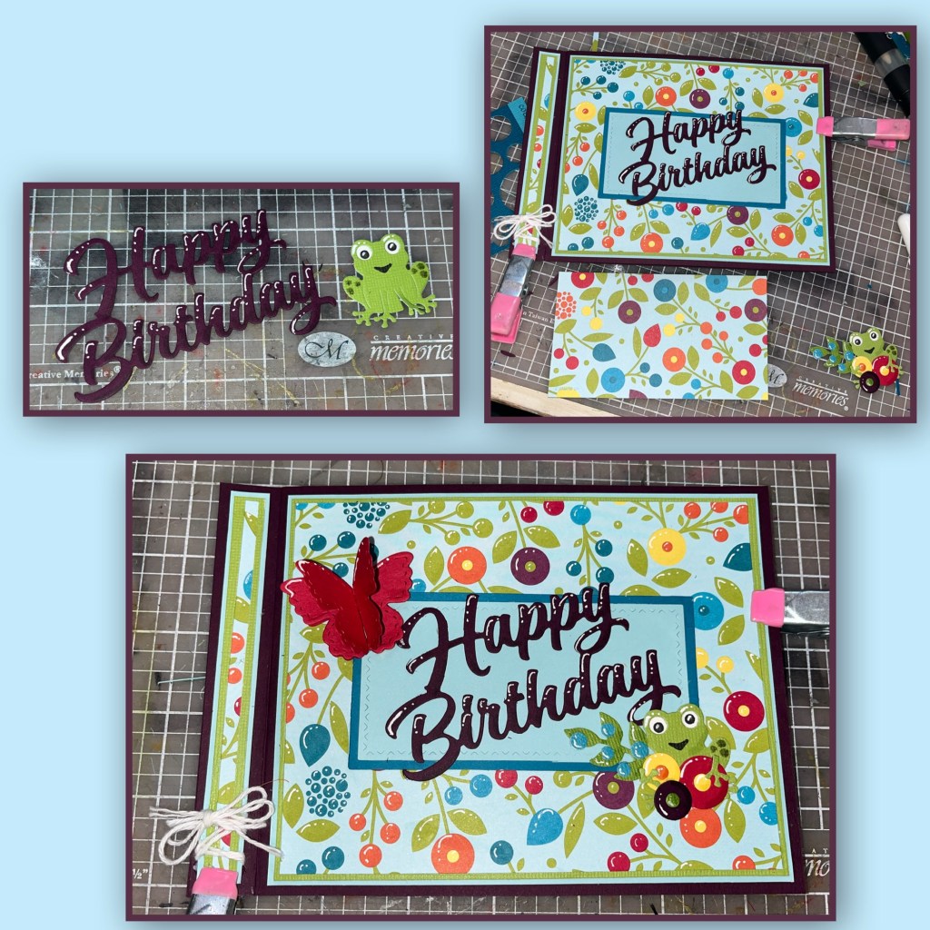 Here is how I met the parameters… Book Binding Card is a style of card where the side fold looks like it’s binded. Candy colours were easy, these bright colours could be jelly beans or gummy candies. My little frog rhymes with “ogg” and Happy Birthday is the letters.