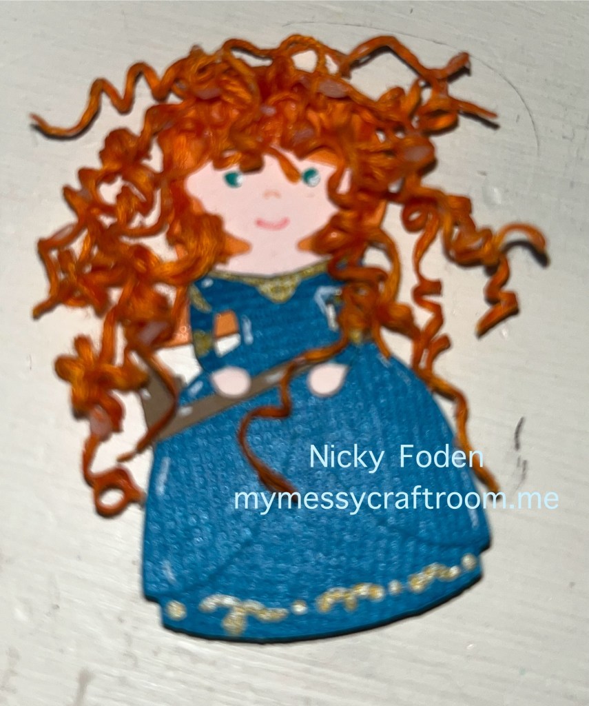 She is pretty easy. Basically just the pieces from the Princess and Mermaid set, cut out in the colours shown with the and assembles as per Karen’s directions. Hair style 2 with the waistband 1 as a headband. The red bow is from the Tiny Gnomes set.