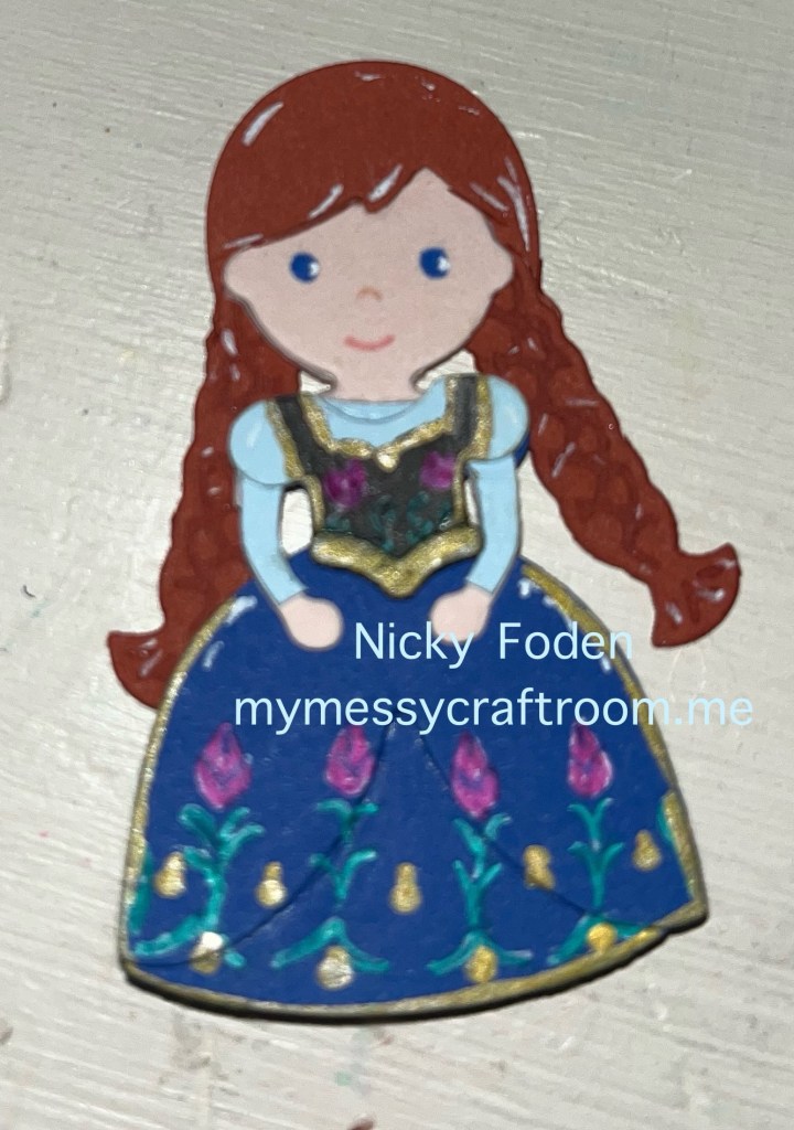 I only used pieces from the Princess and Mermaid die set. I assemble the dress using a medium shade of blue for the dress front and the lighter blue for the back as per Karen directions.