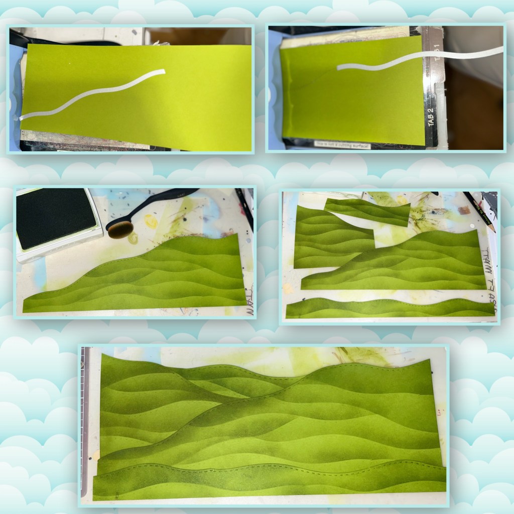Using the Long Nature Edges I cut the hills. I also made a stencil using the same die to brush rolling grass hills.