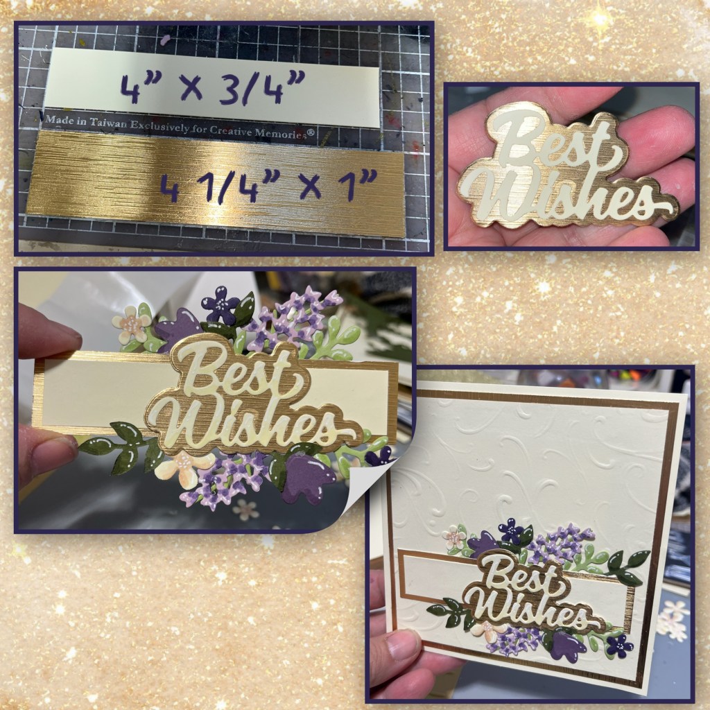 Cut the border to the directions below, I added āBest Wishesā (also from the Wedding Charms set) and some leftover flowers. I added to the card as shown.