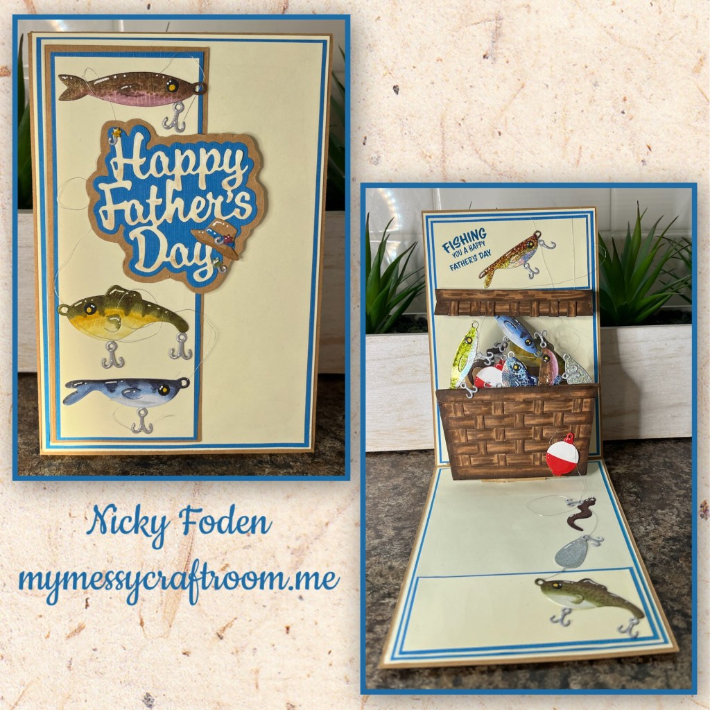 Happy Father’s Day to all the fathers grandfathers, step fathers and fathers to be. I’m sharing this fun pop up tackle box full of fishing lures. I am using Karen Burnistons new Fishing Lures Charms, which will be released on Monday.