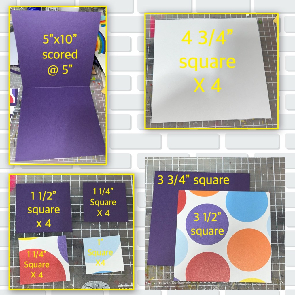 Ok, now I realized I needed to make some changes, and went for it. I cut the card base in half removing the whole card front, then cut the card front in half. I die cut 3 purple FLAPS and added score lines about half way between the edge and the original score lines.