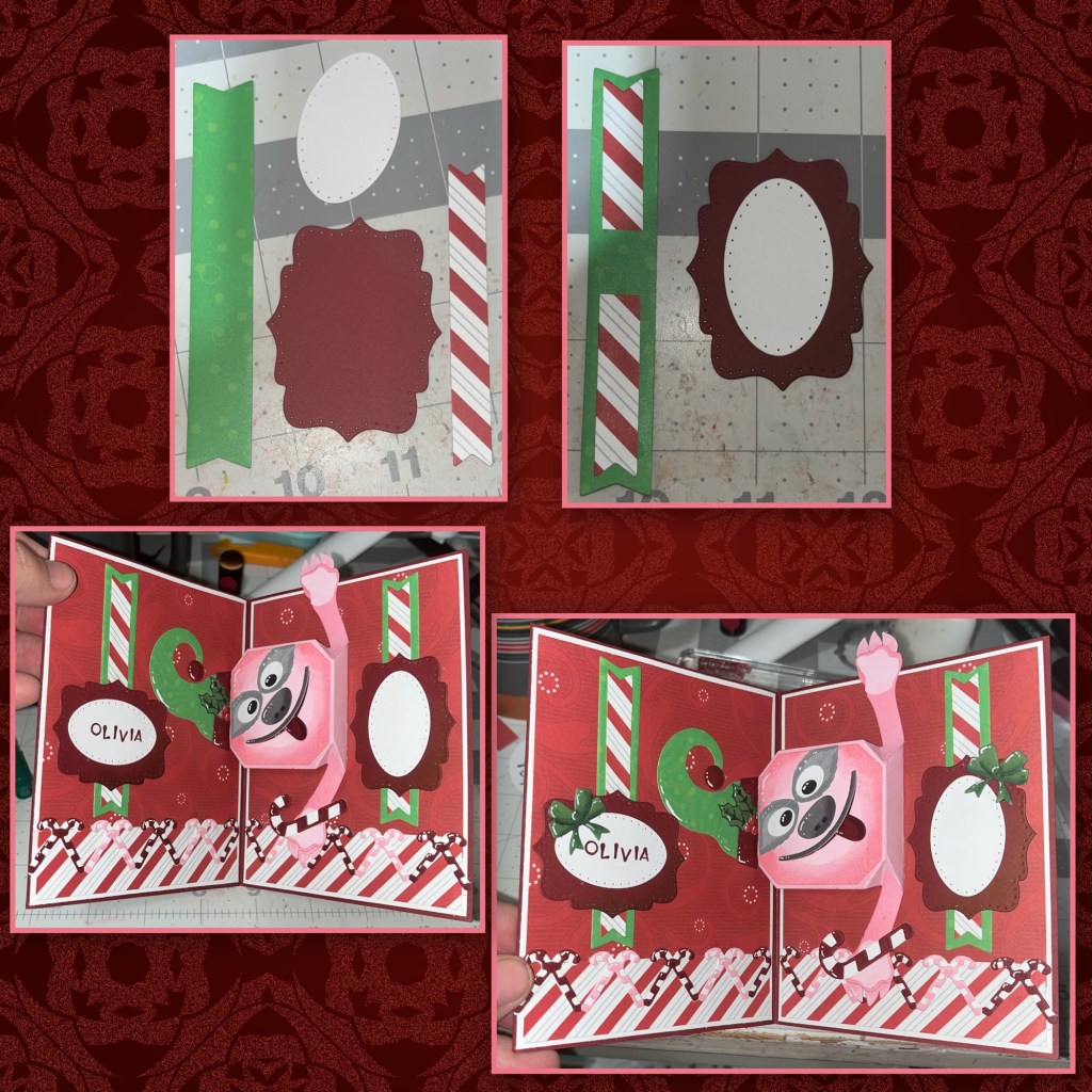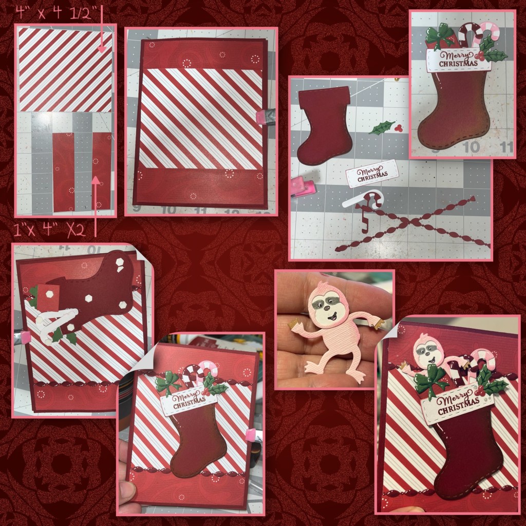 What says Christmas like a big fuzzy pink sloth, lol. I have a sweet little granddaughter that has her most favourite toy in the world and you probably guessed it but it is a pink fuzzy sloth. When I saw her last her I asked what kind of Christmas card would you like and she said a βBaboo Cardβ, but I want Baboo on the inside. I have made her a few cards with a her little sloth friend hanging out but this is the first one that I have made her that is this big. I think it turned out pretty cute.