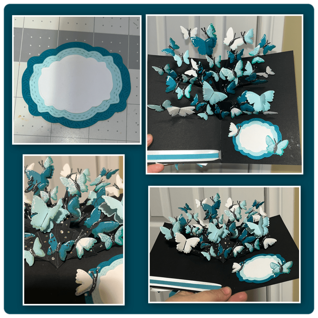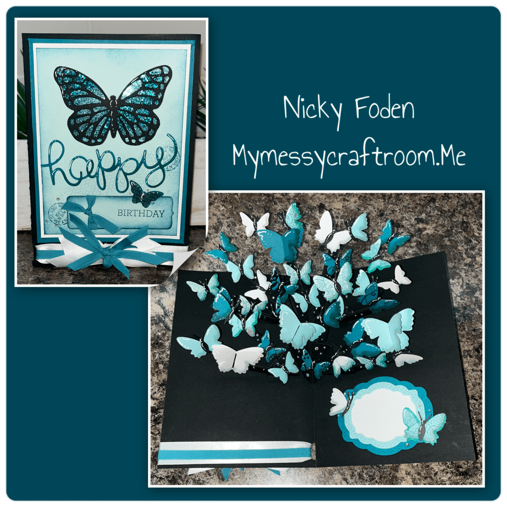 The card below was part of card swap that I was part of when I was a Stampin Up Demo, over ten years ago. (Don’t judge me lol) If I remember correctly I made ten for the swap and since I was on a roll I made a few more. But since then I have been addicted to pop up cards. I decided to make the butterfly card to a pop up butter fly card.