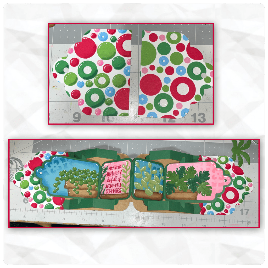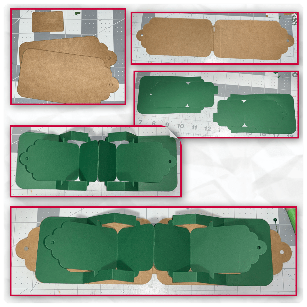 I cut the card base and the mechanism from the Tag Book Pop-Up and assembled (Karen has a video tutorial on the product page at the link ⬆️ )