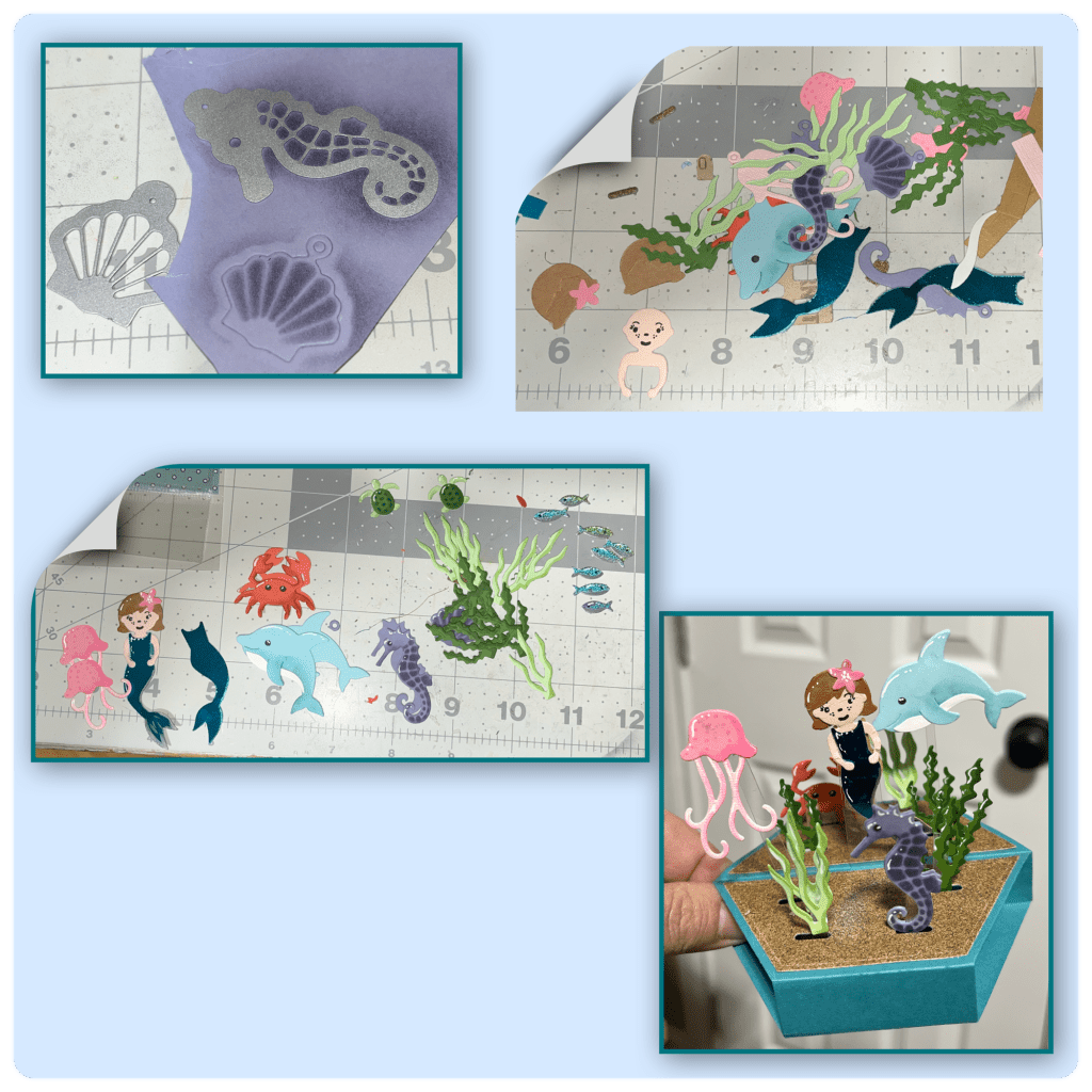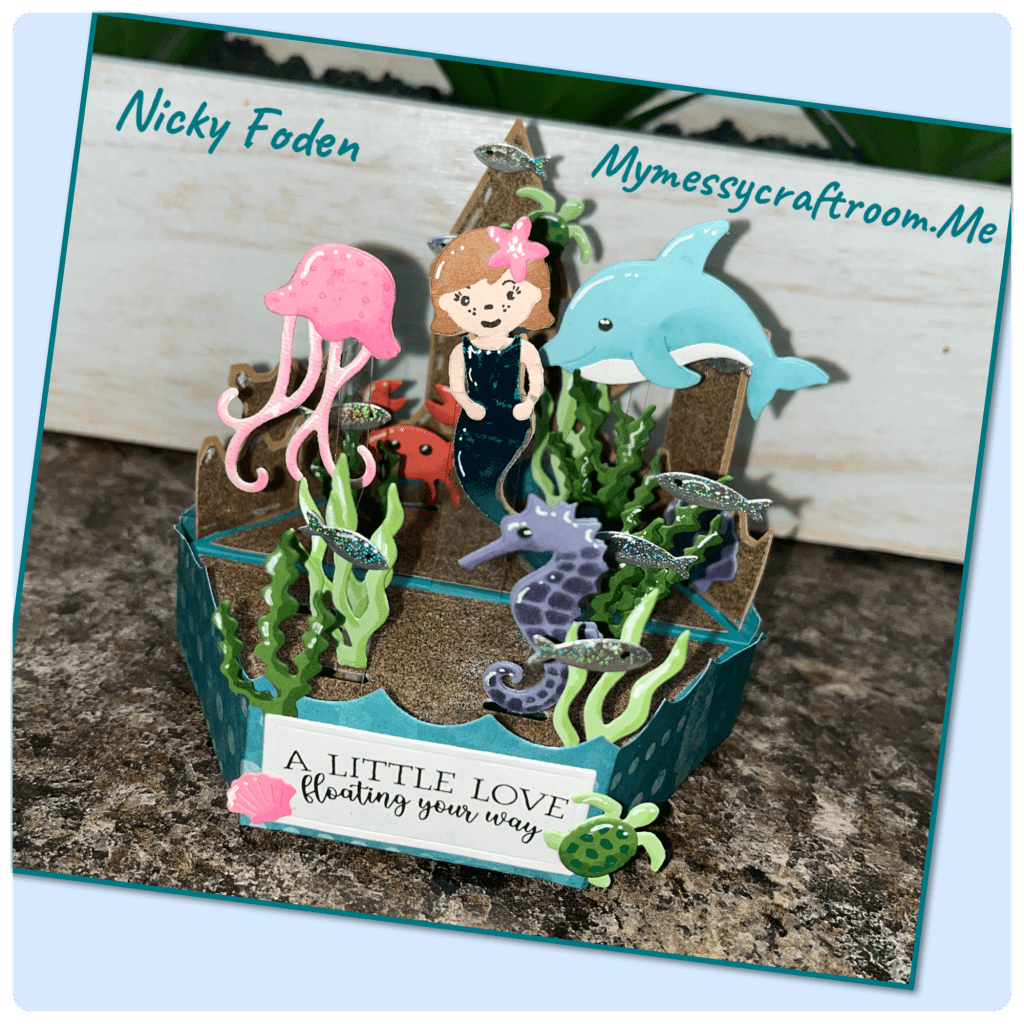 This new Stage platform dies set is so fun and versatile. I thought I would try to make a little under the sea scene. I had a thought in mind that didn’t originally go as planned, so a I had to pivot a bit but in the end I think it turned out pretty cute.