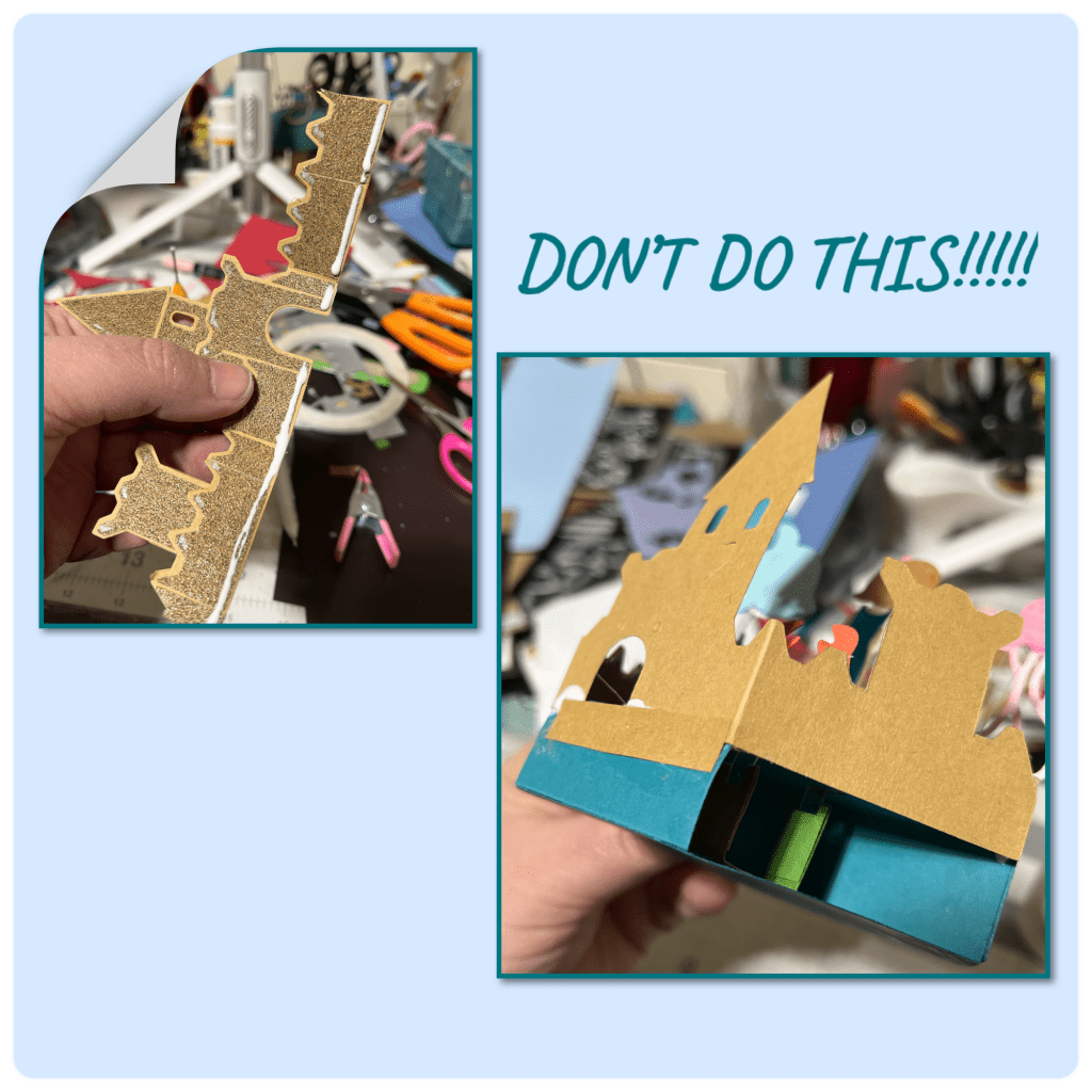 So this is where I made the mistake, I don’t know what I was thinking but I glued the castle to the actual stage, glued this way it does not fold anymore. I noticed right away and removed it before the glue set up too much.