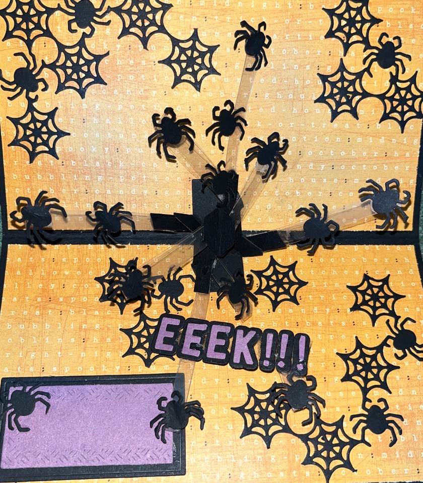 Here is the card I made for the blog hop, as soon as I saw the Spider Slim Pattern Plate I pictured these creepy crawlers in motion with the Hearts Collage Pop up mechanism.