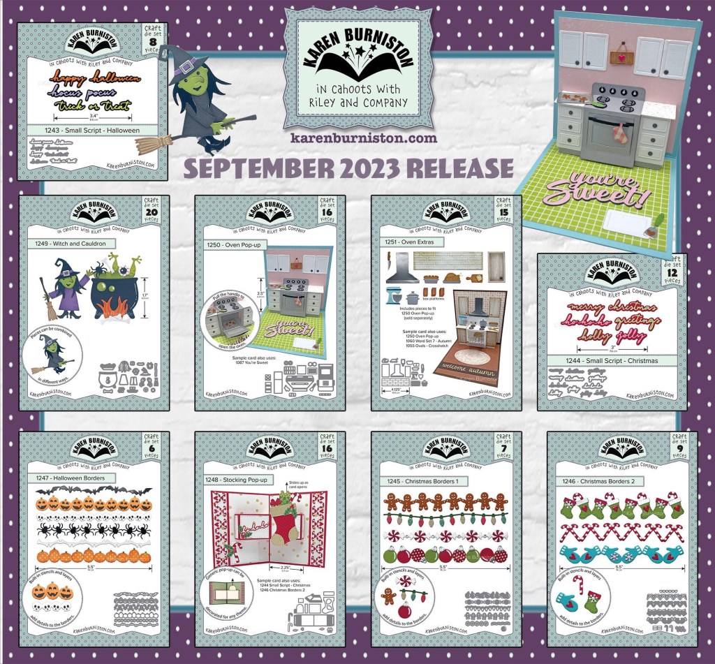 Welcome to our Karen Burniston Products – KB Riley LLC September Release Blog Hop. The Design Team have come together with Karen today for a fun blog hop to celebrate the release of 9 new dies. Sneak peeks of the new release started last week, and the dies are available to order NOW!