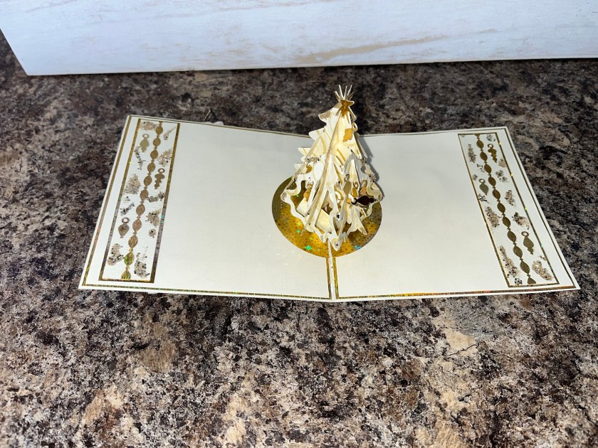 It’s hard to tell in the photograph but I did use the brand new Raising PlatformPop up dieset. The tree top raises up outside the limits of the card when opened.